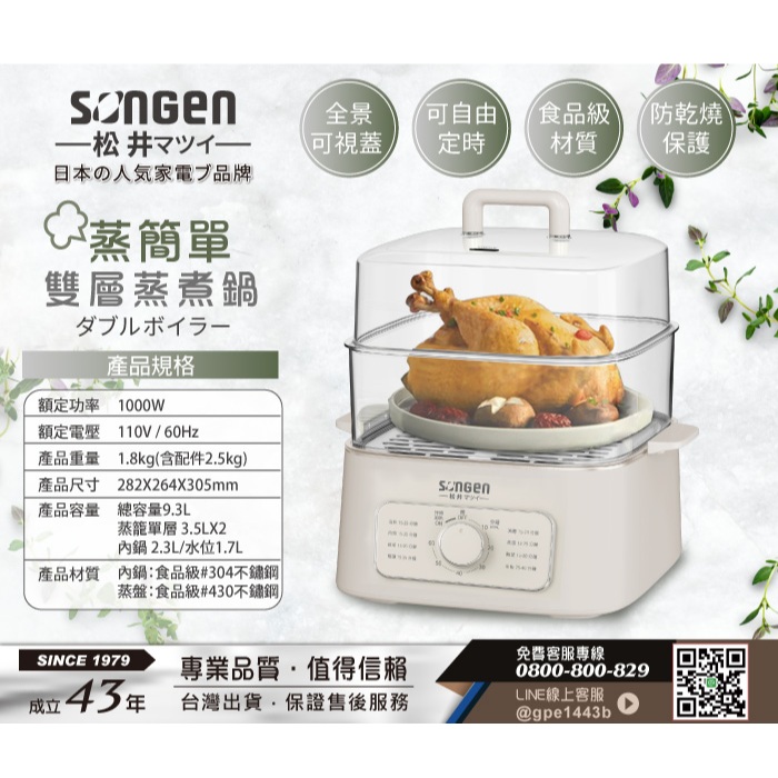 商品容量:總容量9.3L(蒸籠單層 3.5LX2層、內鍋 2.3L/水位1.7L)