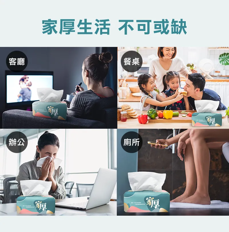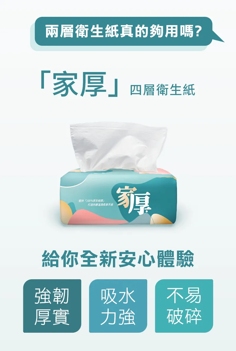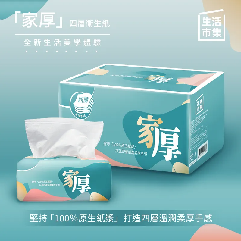 【家厚】可溶水四層抽取式衛生紙(64抽x10包x8袋/箱) 100%原生紙漿