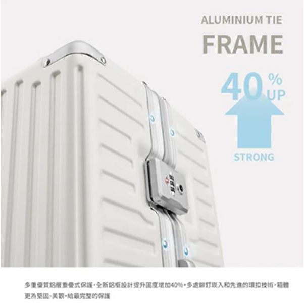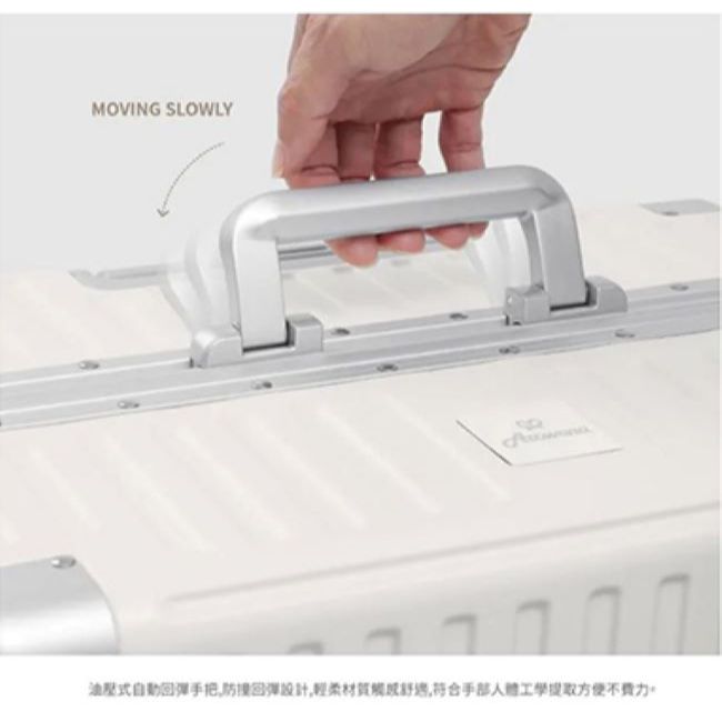 ●商品配件:新彈簧避震加大型靜音輪、鋁合金拉桿、油壓式自動回彈手把、內崁全扣式TSA海關密碼鎖、雙邊網狀格層以及X型可調式束帶、活動式隔板、鋁合金護角