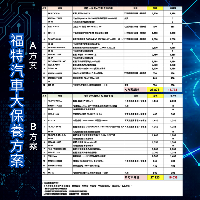 【VIP方案】進口車系-大保養-福特汽車B方案。(消費積點:40)