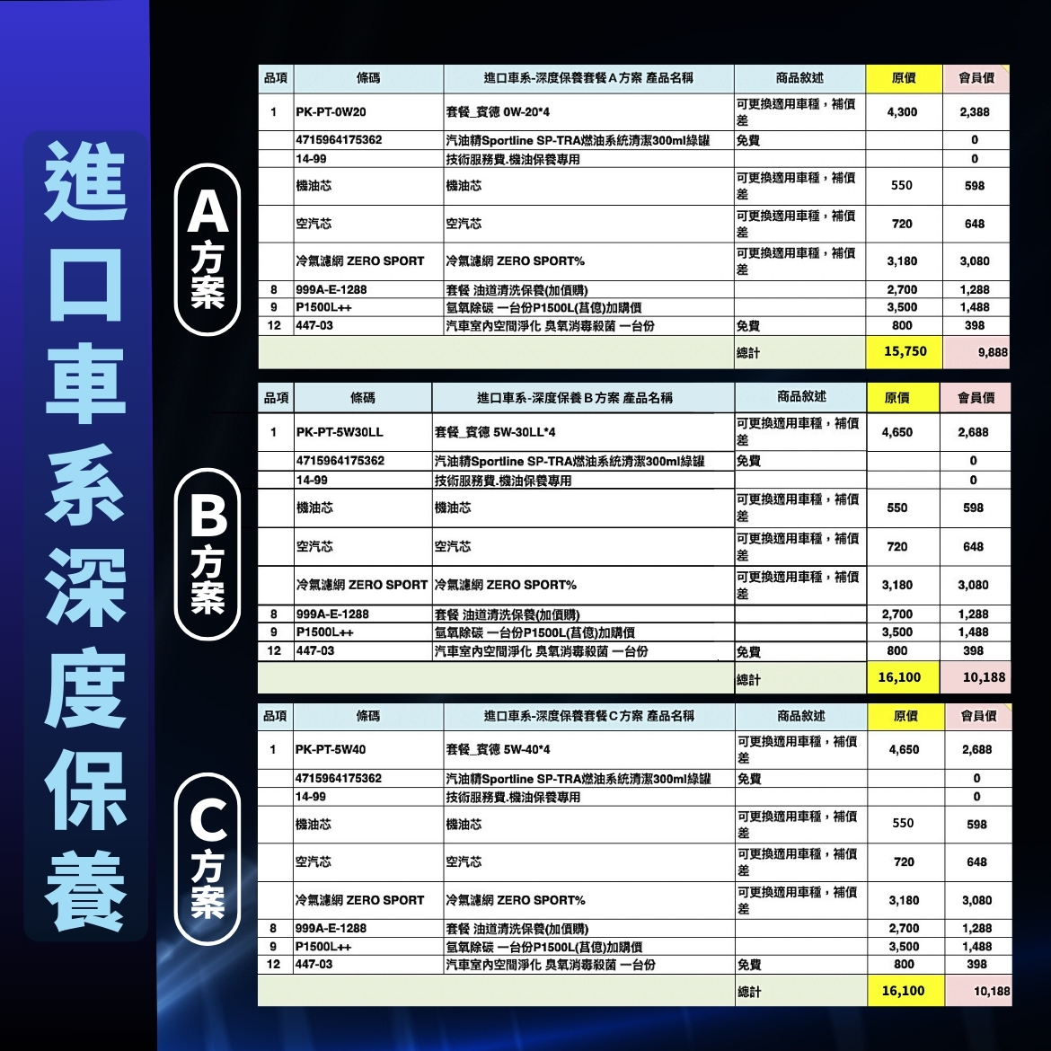 1.機油保養套餐為4公升,若實際數量多於4公升需另外加購。
