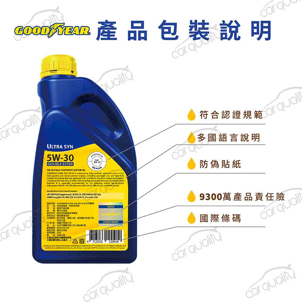 SUBARU固特異 GOOODYEAR機油套餐5W30雙酯ULTRA504/507 1L*5 完工價