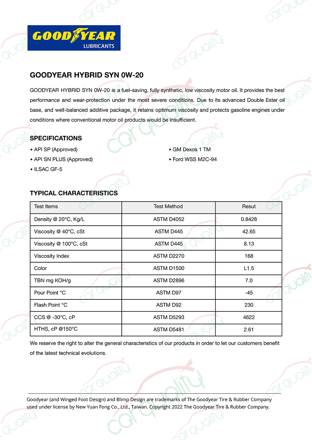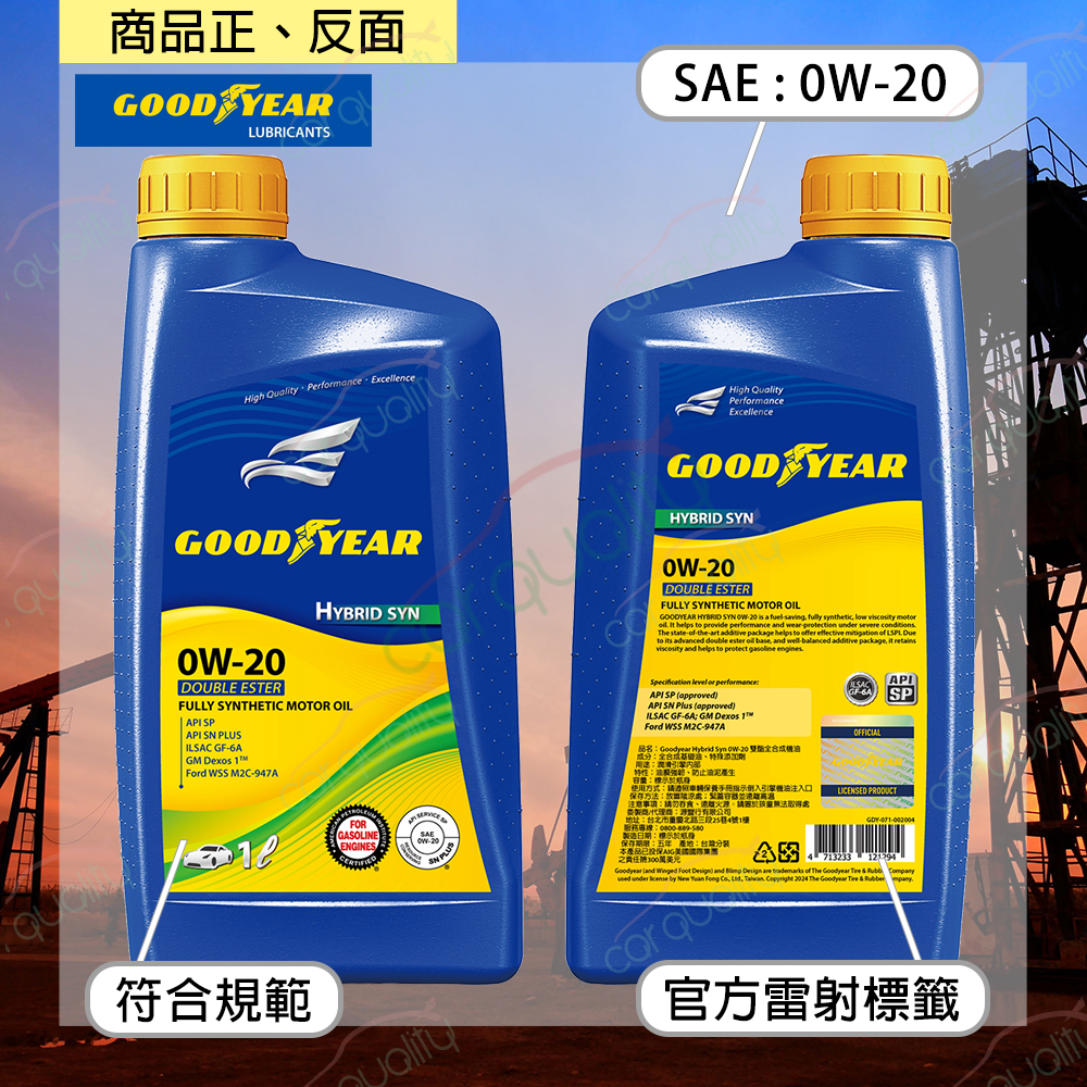 TOYOTA【固特異 GOODYEAR】機油套餐 0W20 雙酯 HYBRID 1L*5 完工價