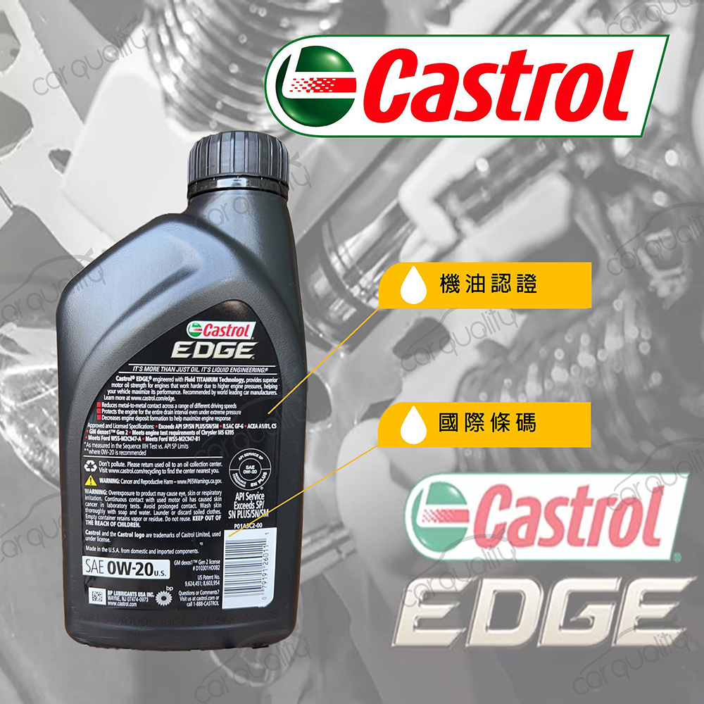 TOYOTA 【嘉實多 CASTROL】機油套餐 EDGE 0W20 黑鈦 4L完工價